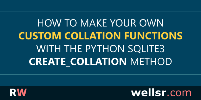 Learn how to make your own collations, or collate sequences, with the Python SQLite3 create_collation method. We will also describe the predefined collations.