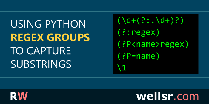 This tutorial describes how to use Python Regex Groups to capture a substring or submatch, and it describes how to refer to a group's substring inside a regex.