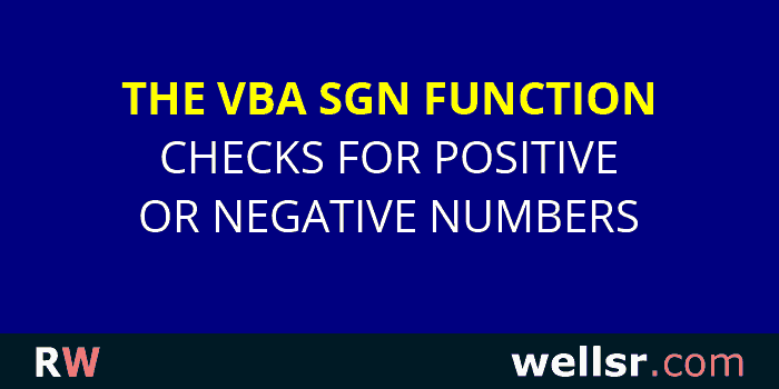 The VBA Sgn function is a quick way to check if a number is positive, negative or zero. Rarely used, the Sgn function can be useful when building conditional statements.