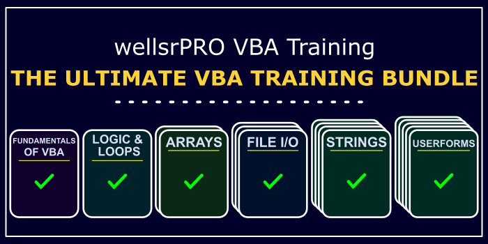 We've combined each of our comprehensive wellsrPRO VBA training reference guides into a single bundle with over 200 tips and macros covering the 125 most important topics in VBA.
