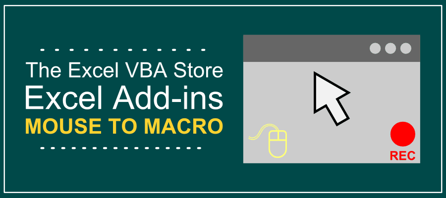 Use Excel to record your mouse clicks and cursor movements and convert them directly into VBA macros so you can automate your mouse. The Mouse to Macro Excel Add-in is the first, and the best, mouse recorder built directly into Excel.