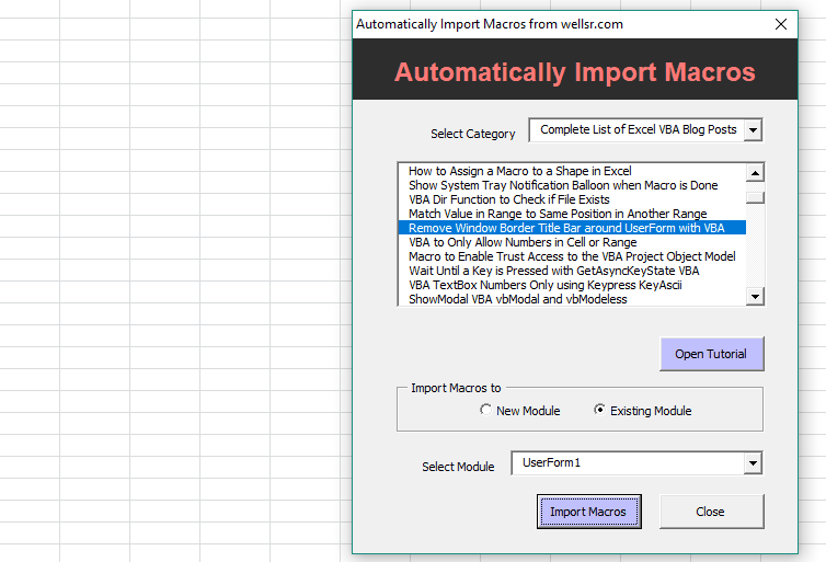 Our Automatic Macro Generator will save you hours of coding by letting you import hundreds of VBA macros from wellsr.com directly into your spreadsheet.