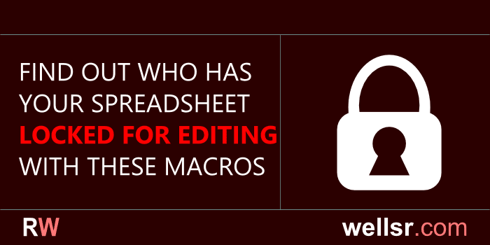 Use VBA to find out who has your Excel file locked for editing. Save this macro to your spreadsheet and it will tell you when someone else has the file open.