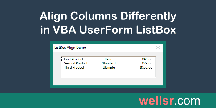 Learn how you can align the text in each column of your UserForm ListBox differently by using the class module I introduce in this tutorial.