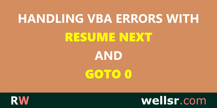 This tutorial shows you how to properly implement VBA On Error Resume Next and GoTo 0. It also shows how to use Resume and Resume Next to exit VBA error handlers.