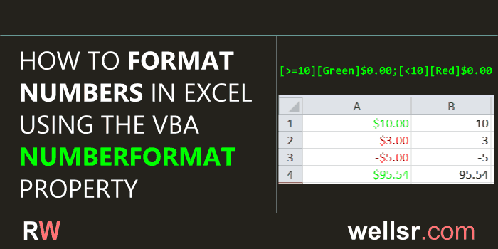 This tutorial teaches you how to format numbers in Excel using the VBA NumberFormat property. The VBA NumberFormat property can control the appearance of decimals, commas and can even format text.