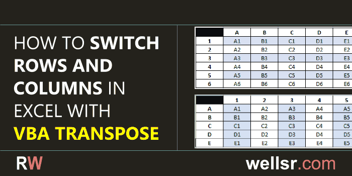 Use VBA transpose to switch rows and columns in Excel. The VBA transpose function is helpful for converting rows to columns and columns to rows. In this tutorial, a macro that transposes both data and formatting is presented.