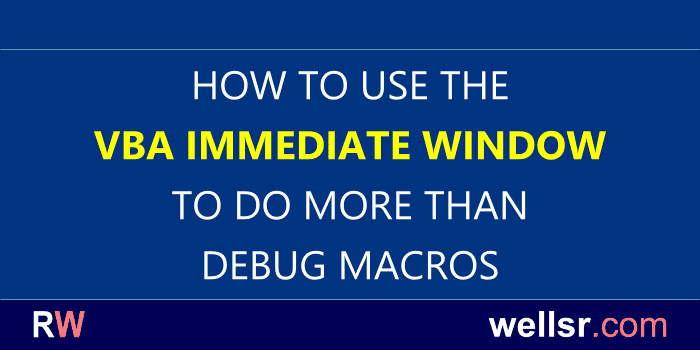 Use the VBA immediate window for code testing, variable confirmation, and reading debug output. This tutorial is full of tips and tricks for getting the most out of the VBA immediate window.