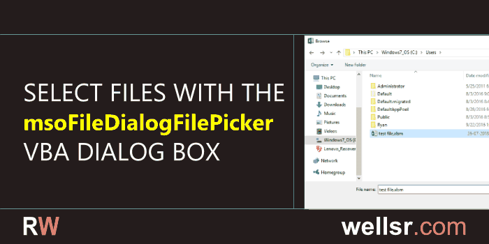 Use the VBA msoFileDialogFilePicker to browse for and select files with a macro. The msoFileDialogFilePicker property is part of the Application.FileDialog family in Excel and behaves much like the GetOpenFileName method.