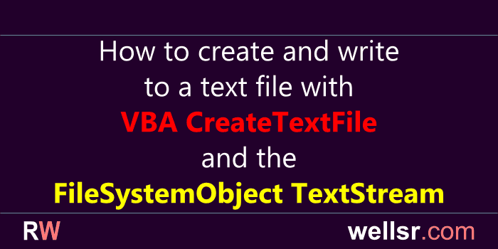 Use the FileSystemObject TextStream to create a text file with VBA CreateTextFile. The combination of TextStream and CreateTextFile make creating text files a breeze.