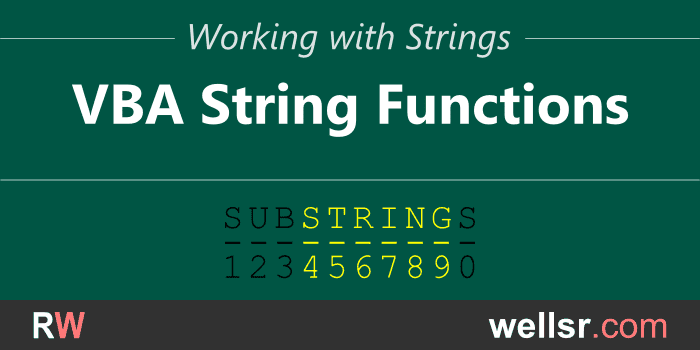 This tutorial describes VBA string functions, explains how to use basic VBA string functions, and guides you to detailed tutorials covering advanced VBA string functions.