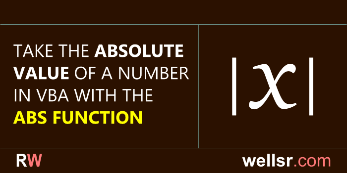 Take the absolute value of a number with the VBA Abs function. The VBA Abs function will return the absolute value of a number or variable in your macro.