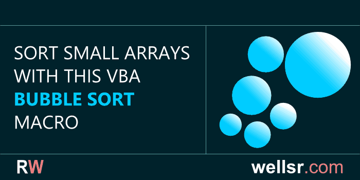 Use this VBA bubble sort macro to sort small VBA arrays. The VBA bubble sort is good for sorting small arrays, but it's a slow algorithm for large arrays.