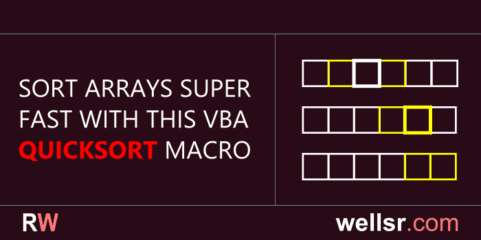 The VBA quicksort macro is a fast way to sort VBA arrays. VBA quicksort is more efficient than bubble sort, so it can be used to sort arrays of all sizes.