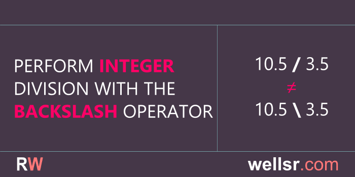 Using a backslash instead of a forward slash to divide two numbers in VBA will divide the numbers but will always return an integer solution.