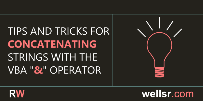In VBA, you concatenate strings into a single string using the &, or ampersand, operator. Simply add an ampersand between your strings to combine them into one string.