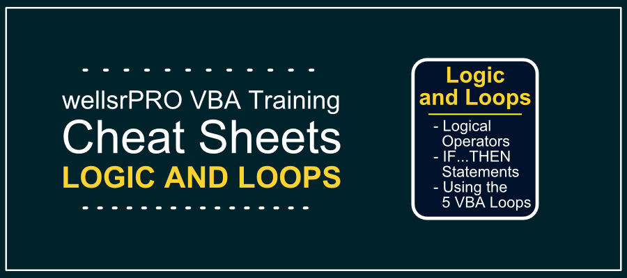 If you're new to VBA, you need to print this cheat sheet and leave it by your desk at all times. This cheat sheet dives deep into IF...THEN, FOR...NEXT, DO...WHILE and several more essential VBA logic and loop topics. As a matter of fact, each of the 5 VBA loop structures are fully explained with helpful examples and syntax highlighting.